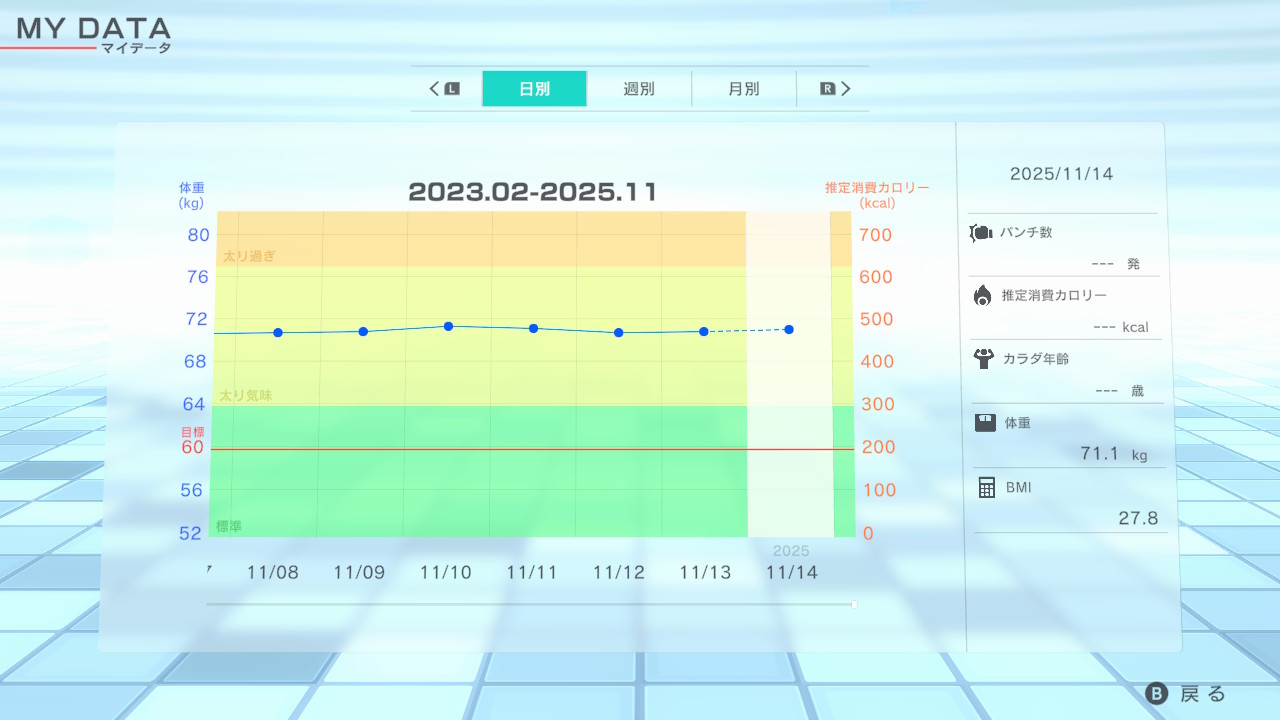 Fit Boxing 2でダイエット 2025年11月14日 通算1007日 ハードトレーニングの日