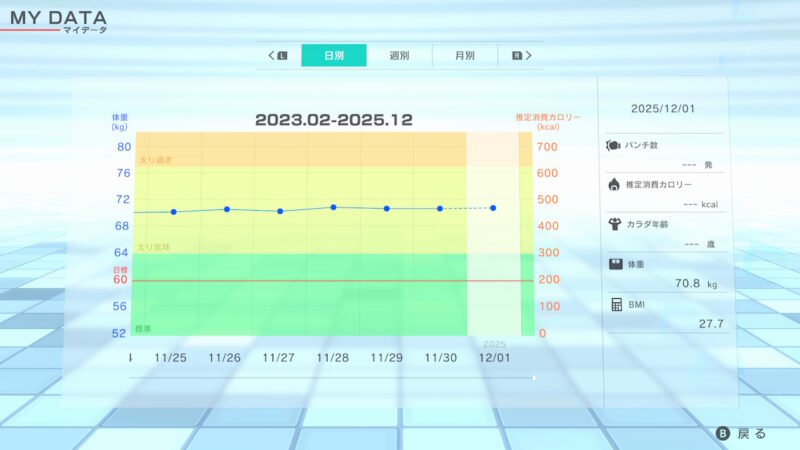 Fit Boxing 2でダイエット 2025年12月1日 通算1024日 今年もあと1ヶ月