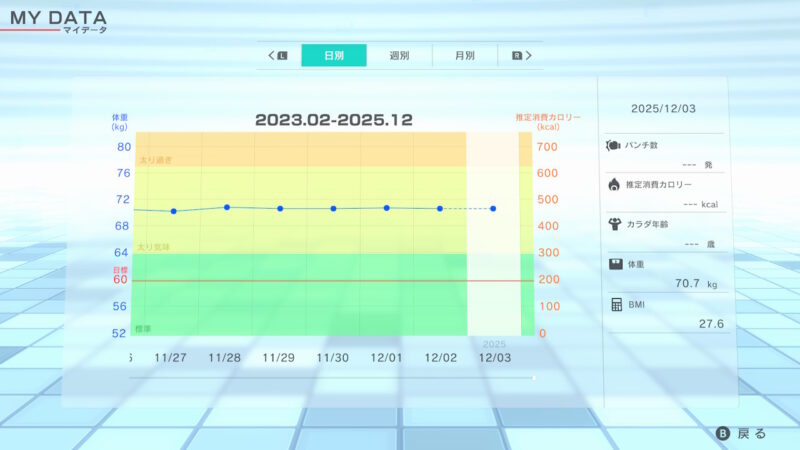 Fit Boxing 2でダイエット 2025年12月3日 通算1026日 突風でウォーキングできず😨