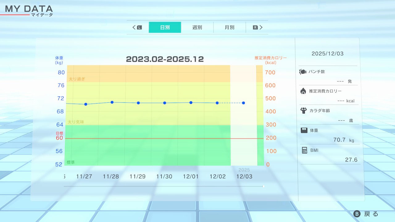 Fit Boxing 2でダイエット 2025年12月3日 通算1026日 突風でウォーキングできず😨