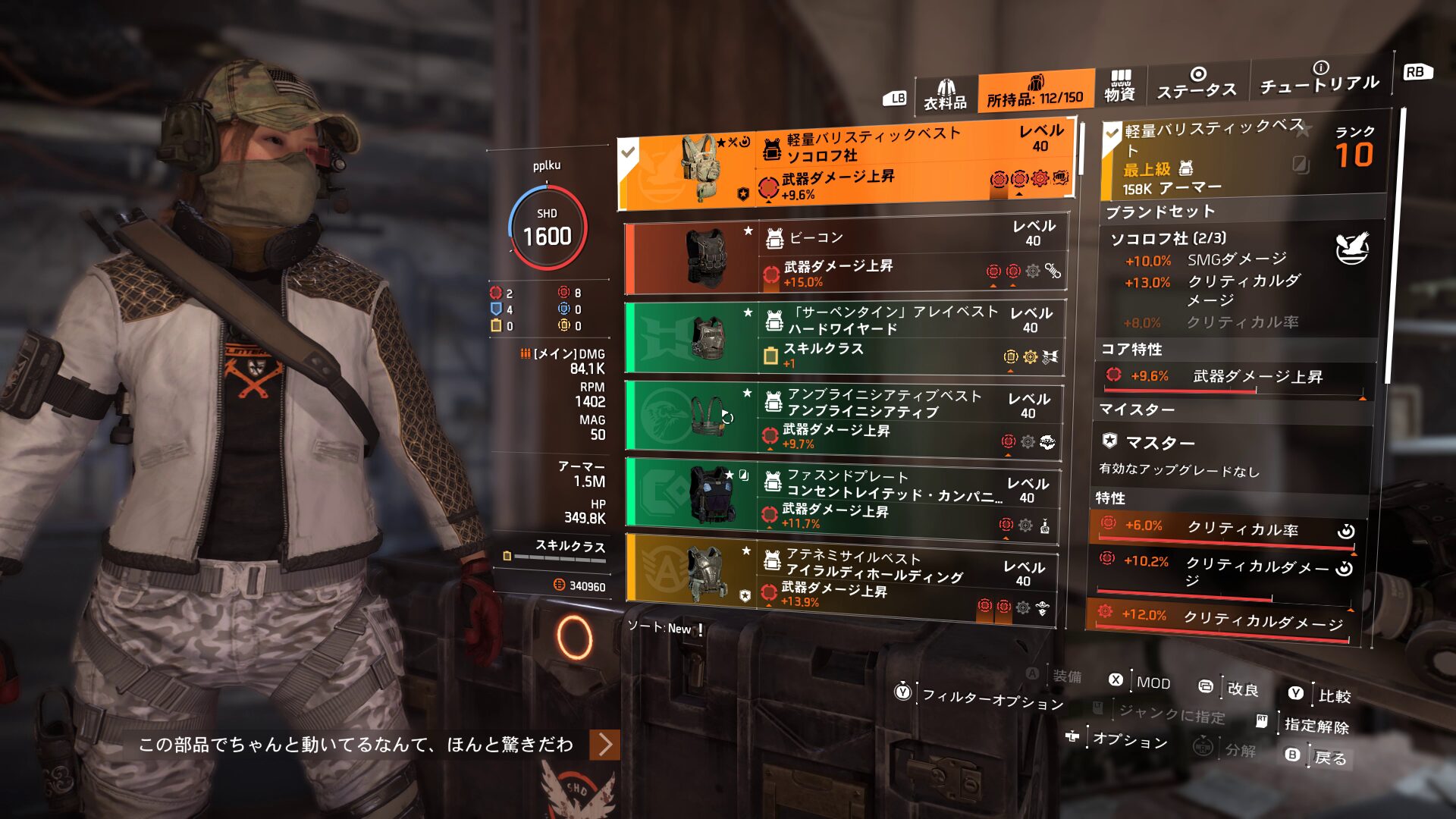 今回、ソコロフを2部位装備することでSMGダメージ上昇とクリダメ上昇を狙っています。