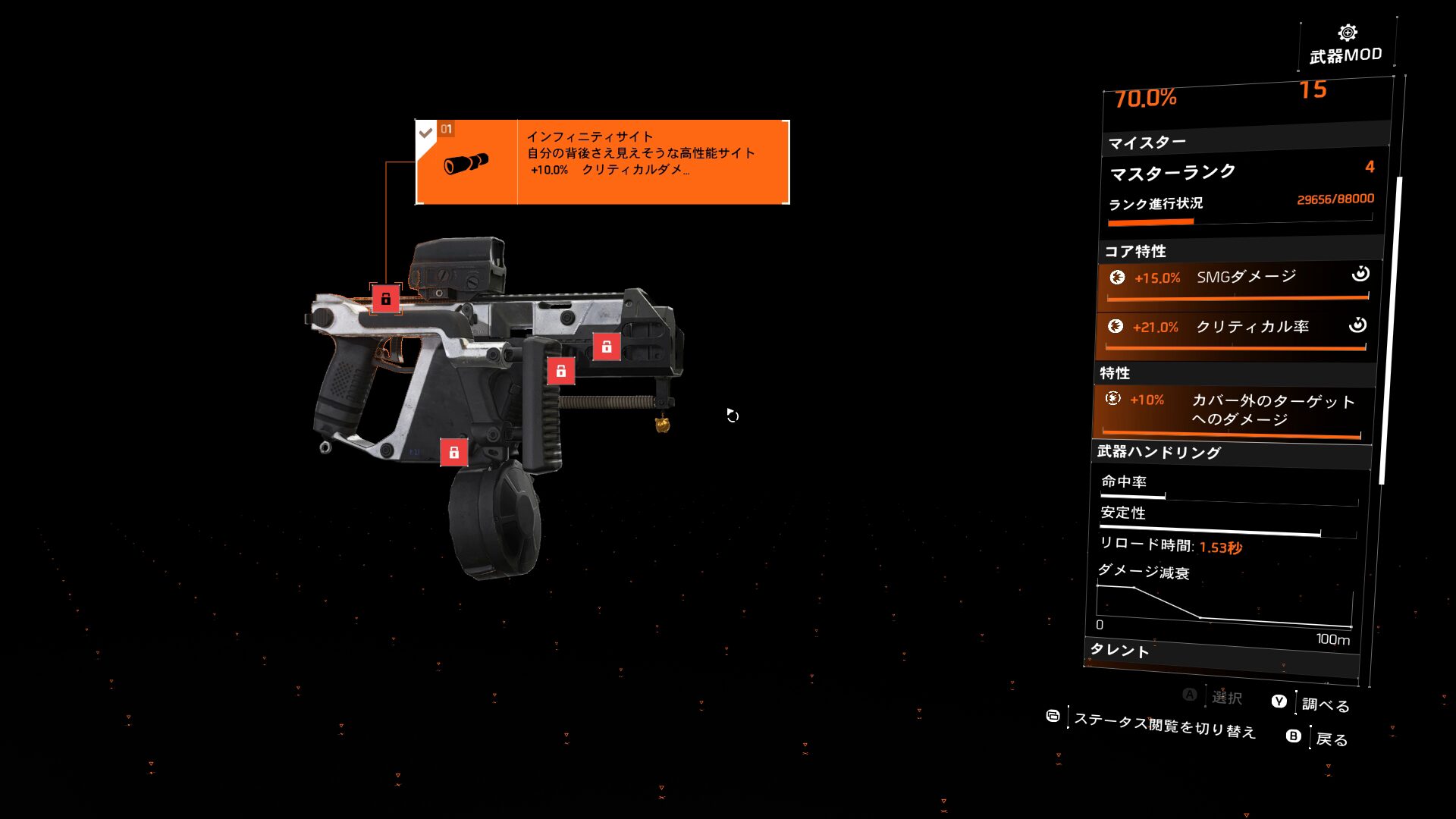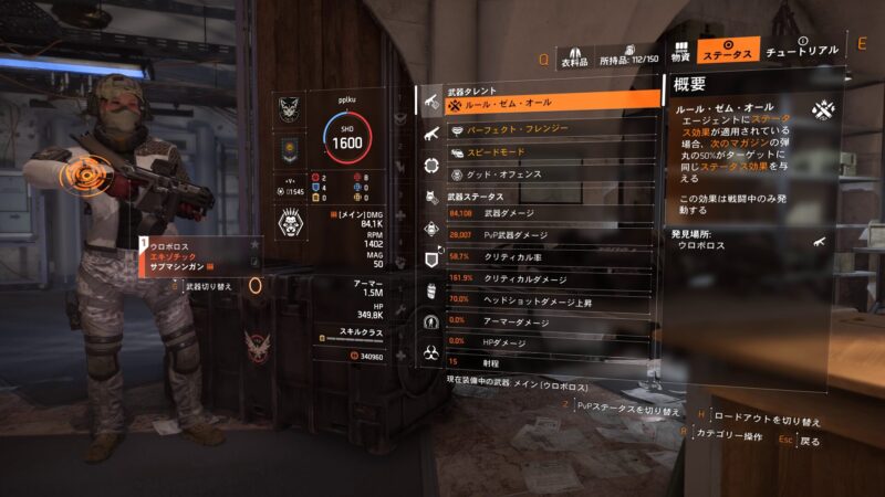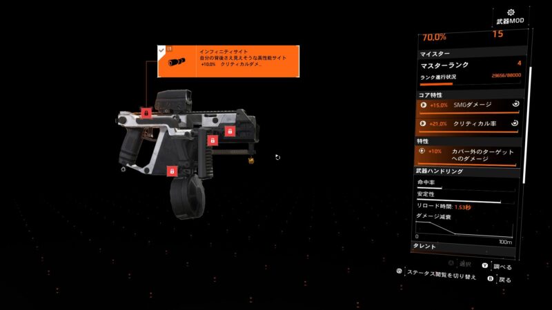詳細は割愛しますが、この武器はタレントがどうこうよりも武器の素体として高連射レート+弾薬が比較的多い50発というのが最大のストロングポイントだと思います。