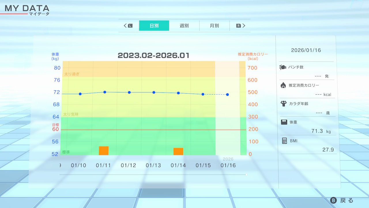 この1週間、運動の量を極端に控えているのに不思議と増えた体重は1週間前の状態に戻ってきました😮