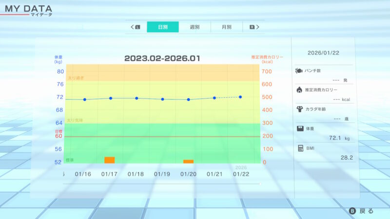 Fit Boxing 2でダイエット 2026年1月22日 通算1076日 寒くてウォーキング出来ず🥶