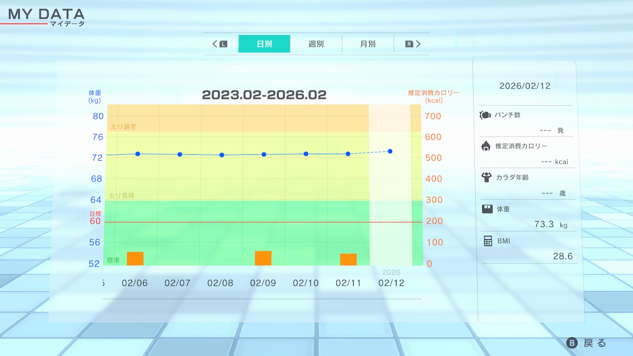 Fit Boxing 2でダイエット 2026年2月12日 通算1097日 増量したけど体脂肪率は減る