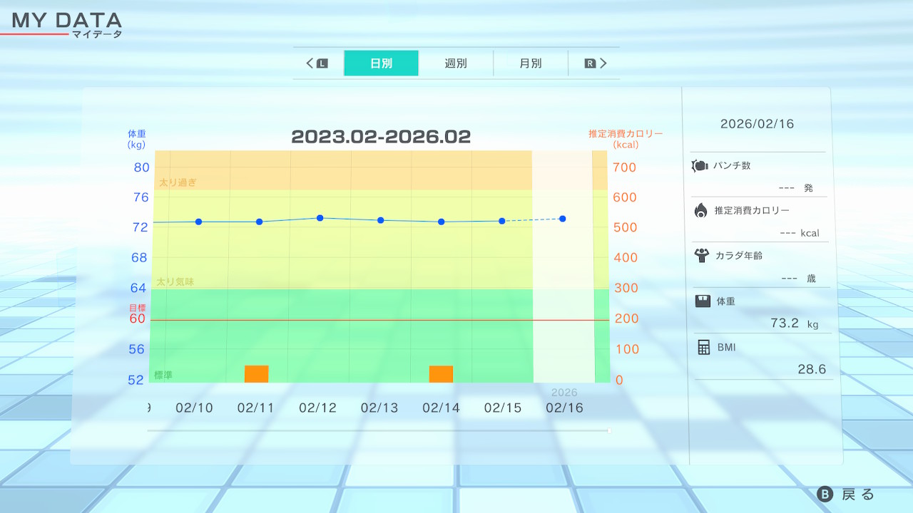 Fit Boxing 2でダイエット 2026年2月16日 通算1101日