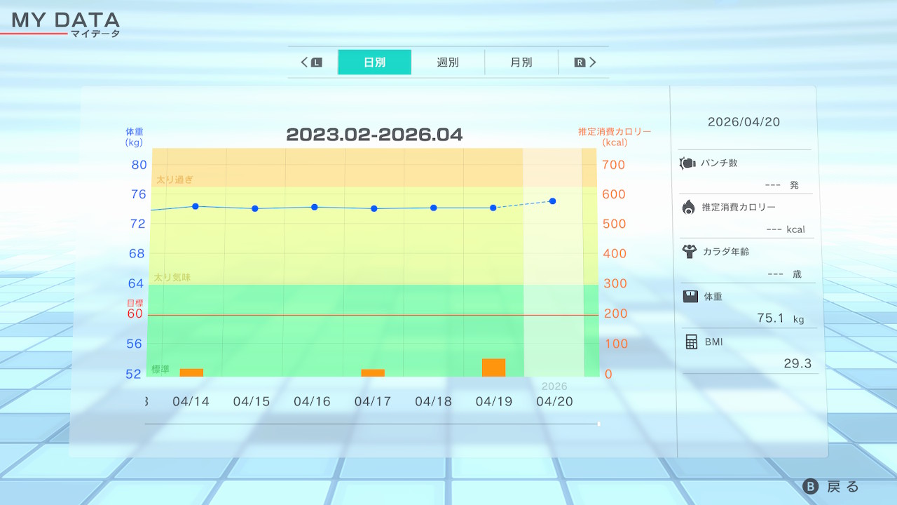 体重が一気に増加してしまいましたが、まあ昨日は歩けていないのでこんなものかなと。